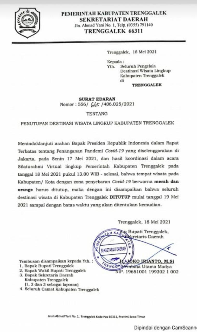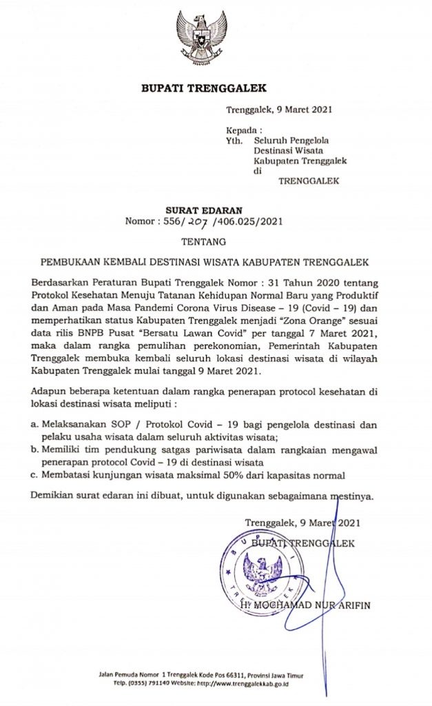 SE Bupati Tentang Pembukaan Kembali Tempat Wisata