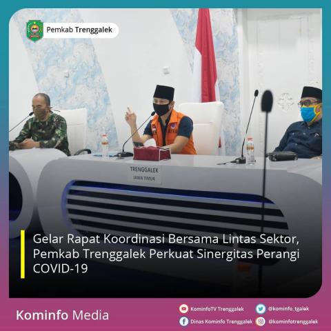 Pemerintah Kabupaten Trenggalek memperkuat sinergitas lintas sektor dalam rangka menanggulangi dampak sosial ekonomi dan resiko penyebaran penyakit akibat wabah covid-19. Hal tersebut disampaikan oleh Bupati Trenggalek H. Mochamad Nur Arifin usai memimpin rapat gugus tugas percepatan penanganan Covid-19 bersama DPRD, Kapolres dan Dandim 0806 di Smart Centre, Senin (20/4). "Kami hanya beri waktu dua hari kepada tim gugus tugas sambil berjalan, karena semuanya hal-hal teknis sudah kita lakukan. Tetapi kita ingin menjahit agar menjadi kolaborasi yang lebih masif, dan selanjutnya nanti strategi ini kami sebarkan kepada publik, agar masyarakat juga tahu sebenarnya apa tindakan-tindakan yang di ambil pemerintah, dan masuk ke dalam strategi yang mana," tutur Bupati Nur Arifin.