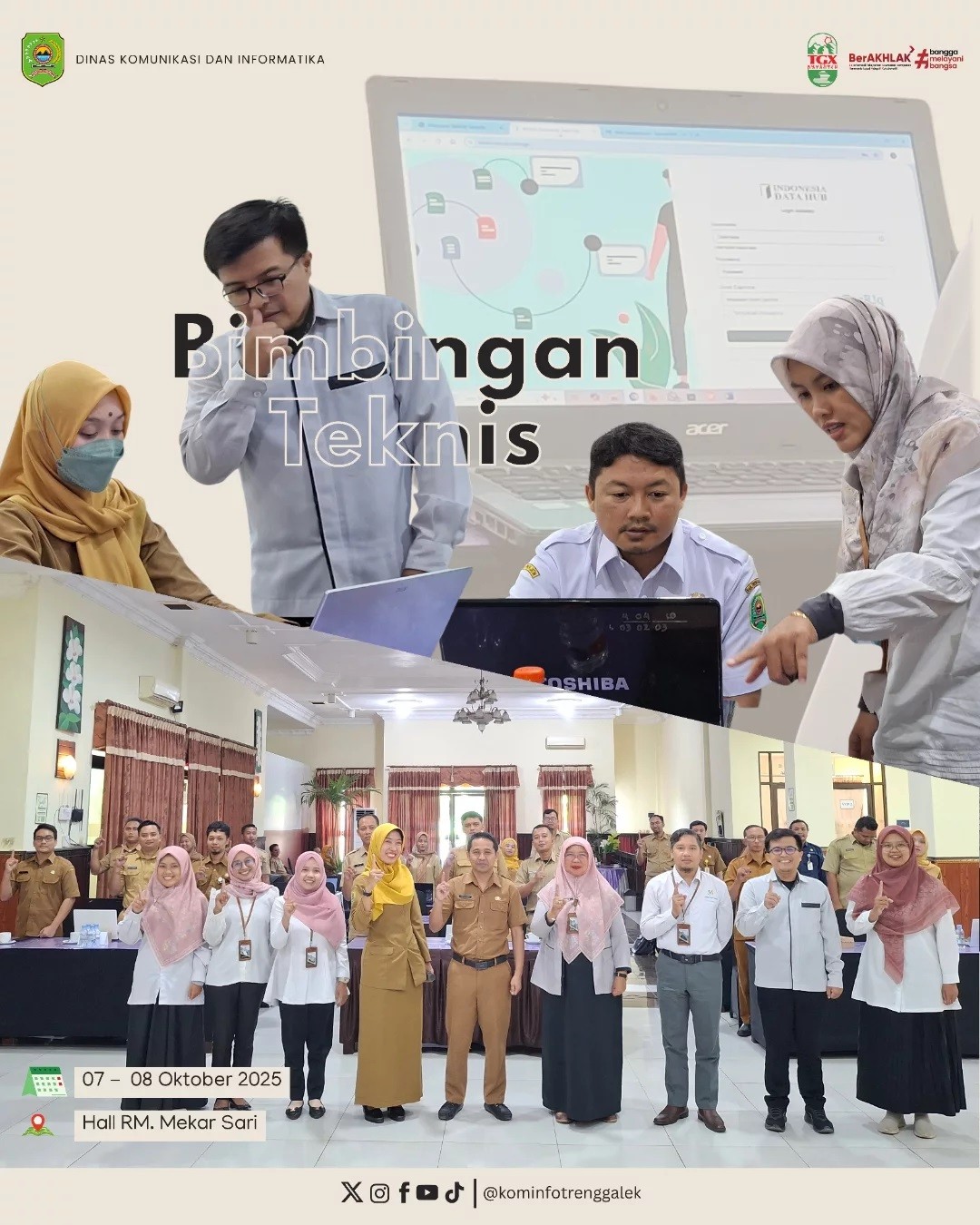 Dinas Komunikasi dan Informatika bersama Badan Pusat Statistik Kabupaten Trenggalek menggelar Bimbingan Teknis Pengisian Standar Data dan Metadata Statistik Sektoral melalui aplikasi Indah BPS, kegiatan ini dilaksanakan selama 2 hari bertempat di Hall Mekarsari (Selasa - Rabu, 7 - 8 Oktober 2025).