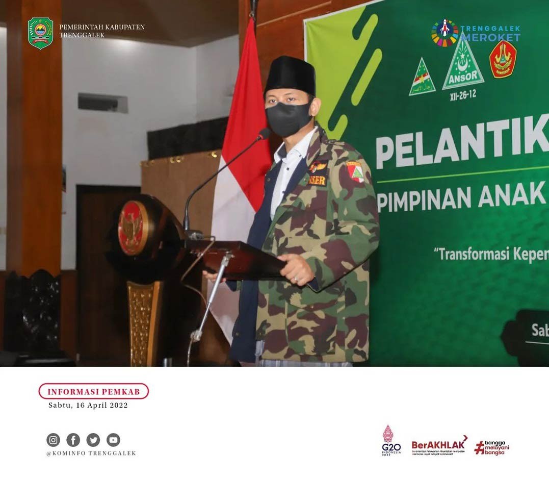Pimpinan Anak Cabang Gerakan Pemuda (GP) Ansor Trenggalek periode 2022-2024 dilantik Bupati Trenggalek Mochamad Nur Arifin di Pendhapa Manggala Praja Nugraha, Sabtu (16/4/2022).