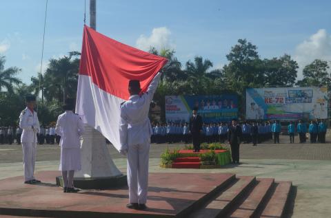 "89 Tahun yang lalu sebanyak 71 pemuda dari seluruh penjuru tanah air berkumpul disebuah gedung di Jl. Keramat raya di daerah Kwitang Jakarta. Mereka mengikrarkan diri satu nusa, satu bangsa, satu bahasa yaitu Indonesia, sungguh sebuah ikrar yang sangat monumental bagi sejarah perjalanan bangsa Indonesia. Ikrar ini nantinya 17 tahun kemudian melahirkan proklamasi kemerdekaan Republik Indonesia tanggal 17 Agustus 1945. Sumpah pemuda dibacakan di arena kongres pemuda kedua dihadiri oleh pemuda lintas suku, agama, dan daerah yang berasal dari pulau-pulau terjauh di Indonesia," jelas Bupati dalam sambutannya.