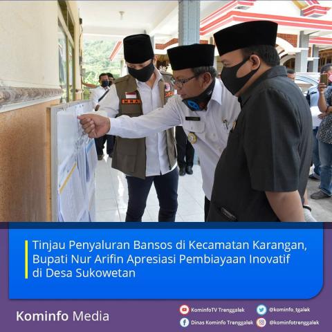 Meninjau penyaluran BLT Dana Desa di Desa Kayen dan Desa Sukowetan bersama Wakil Ketua DPRD Trenggalek, Bupati Trenggalek Mochamad Nur Arifin mengapresiasi gerak cepat Desa Sukowetan yang sudah melakukan pembiayaan inovatif dalam menangani dampak sosial ekonomi akibat pandemi wabah covid-19, Rabu (6/5).
