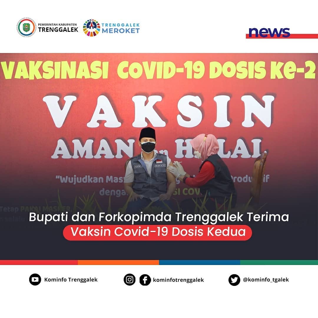 Bupati Trenggalek Mochamad Nur Arifin bersama jajaran Forkopimda, tokoh agama dan tokoh masyarakat menerima penyuntikan vaksinasi Covid-19 dosis kedua. Vaksinasi dosis kedua dilakukan setelah 14 hari penyuntikan vaksinasi pertama pada 29 Januari lalu, Jumat (12/2/2021).